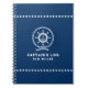 Captains Log Navy Blue White Nautical Boat Wheel Notebook