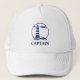 Navy Blue Nautical Lighthouse Captain on White Customisable Hat.