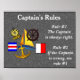 Captain's Rules - poster Rule #1 The Captain is always right. Rule #2 If the Captain is wrong, see rule #1.