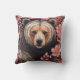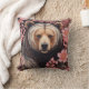 Captivating Brown Bear Gaze Pink Flowers Cushion