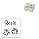 Add your pet cat or dog's signature to you correspondence or creative projects. Unique way to captivate attention and affection of fellow animal lovers. This lovely pet signature rubber stamp mixes the cuteness of a paw print illustration and casual handwriting style name print. To top the sweetness chart, paw prints are designed so that each brings a little heart to the picture.