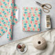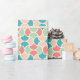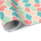 Seamless geometric pattern with interlocking arcs in coral, teal, and pastel green. The design creates a wave-like, hypnotic effect, conveying a retro vibe.