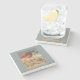 The coasters are gorgeous, a quality feel and heavy weight. They look like a precious archeological find. A rustic stone juxtaposed with a modern floral black and white print. I like the way the print goes slightly imperfect on the cut stone edges giving them a kind-of natural beauty.