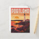 This captivating postcard showcases a majestic lighthouse standing tall on the Portland, Maine waterfront. A perfect memento for yourself, or a delightful gift for anyone who loves lighthouses or the charming city of Portland, Maine.