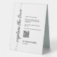 Perfect for enhancing your wedding experience and capturing memories, this photo sharing table tent sign seamlessly blends style with functionality. Make a statement with this uniquely designed table tent sign that adds a touch of convenience to your wedding photo sharing efforts.