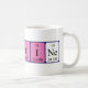 Capucine spelled out as Ca P U C I Ne (Calcium Phosphorus Uranium Carbon Iodine Neon) on a mug for the scientist in you.