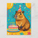 This charming capybara birthday postcard features an adorable capybara around a birthday cake at a festive table. With no text on the front, it's perfect for customising your own message—whether you're sending birthday wishes, using it as a party invitation, or gifting it to a fellow capybara lover. Sweet, funny, and versatile, it's a delightful way to celebrate in style!