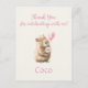 A sweet capybara thank you card designed for a first birthday celebration. The soft pastel background and adorable watercolor illustration create a warm and charming look. Personalise the child’s name to make it special for your party. Perfect for matching your capybara birthday theme and sending guests a thoughtful note after the celebration.