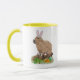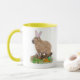 A cute capybara wearing an Easter Bunny headband with tiny capybaras all dressed up for Easter! A great choice for this Easter season, also featuring Easter grass, veggies, Easter eggs, and a family motif.