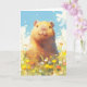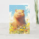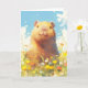 This delightful greeting card features a cheerful capybara standing proudly amidst a vibrant field of wildflowers, gazing with a warm and friendly expression. Against a bright blue sky, the scene exudes joy and peace, capturing the capybara’s loveable personality. With its detailed, whimsical illustration style, this card is perfect for animal lovers and nature enthusiasts alike. Whether it’s for a birthday, thank you, or just to brighten someone's day, this card brings a touch of charm and warmth, making it an ideal choice for capybara fans and anyone who appreciates adorable animal art.