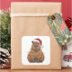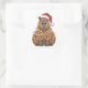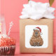 Chill capybara wearing a mini Santa hat, floating in a "hot spring" (mug of cocoa). Tiny ducks on its back also wear hats.