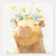This whimsical capybara sticker features a joyful capybara with its eyes closed, wearing a delicate crown of wildflowers in shades of yellow, blue, and pink. The soft, painterly illustration captures a serene and dreamy atmosphere, with the capybara radiating pure happiness and tranquillity. The surrounding wildflowers and gentle sunlight enhance the peaceful, nature-inspired setting, giving the design a charming and cosy feel. This sticker is perfect for capybara lovers, nature enthusiasts, and those who appreciate uplifting and soothing imagery.