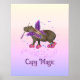 A cute and funny design featuring an adorable capybara fairy holding a magic wand in her mouth, surrounded by sparkling stars. She wears fashionable pink shoes. This playful and dreamy illustration is perfect for girls who love magical animals and fairy vibes.