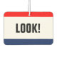 A look promotional air freshener you can easily customise in a few steps if you want. Edit the text line fields you see on this product page, with your own short words. Use capital letters for best results.