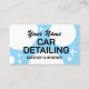 Car detailing business card template. Personalised company card with soap bubbles and sparkles design . Blue or custom colours. Professional visit card for automotive cleaning business, car washing, waxing, auto repair and more. Also handy for other cleaning services, part time or full time.