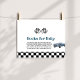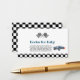 modern minimalist blue car race baby shower book request cards with "Books for Baby" written in modern pink and black lettering on a white backdrop. Customise the basic book request cards with your own words below. The design complements our Baby Shower Script baby shower collection.