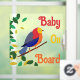 This car rear window cling is based on the artwork ‘Chromatic Serenade: Bird on Branch’ by Fantabuloustef. It is surrounded by the message « baby in board » to ask the other drivers to be very cautious to your baby’s security.
