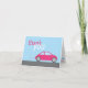 A pink car thank you note - perfect for the girl who loves cars! The front features a light blue background with a hot pink car and text in pink and white. The inside has surf blue and hot pink cars and a place to personalise it with your child's name.