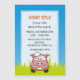 Pig cartoon car with soap bubbles over green grass under blue sky.