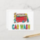 Car Washing design shows car cleaning by two expert car washers. One uses a pressure hose to clean away grime and the other uses old-fashioned sponge, soapy water and hard work.