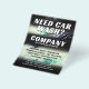 Car wash cover with dynamic image of water wave splash and luxury car. Includes price list, promo discounts and QR code space.
