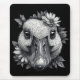 Yo, meet Cara. This ain't your grandma's goose. This is a full-face shot of a goose with zero chill, rocking a headdress of sharp, tangled florals. It's all rendered in high-contrast black and white—no soft watercolors here. Printed edge-to-edge on a standard mouse pad for smooth glides.