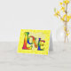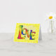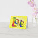 Card14.11.40.4 HEART NOTECARD with SMILE Note card with my unique yellow SMILE design as the background and a large heart with my uniquely designed rainbow-coloured "LOVE" on the front.