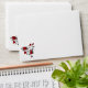 Card envelope shown in white with a red roses vine art print design on the inside as well as a accent on the front of the envelope.