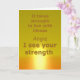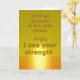Buy a greetings card for an ill friend. Does your friend live with chronic illness? Is a get well card unsuitable because they live with severe, long term or even terminal illness? Do you want them to read words of encouragement? Let this powerful friendship card communicate your admiration. Alternatively, buy as a card for a sick sibling, parent or child. The words on the front of the card are “It takes strength to live with illness. I see your strength”. The message inside this get well card reads "with my admiration". Alternatively you can customise the card. For example, you might change the message inside to make it a Happy Birthday card for an ill friend. It is equally suitable for a friend living with physical or mental illness. If you wish to send the card direct, add the name of the recipient and your own name. Alternatively delete these options and stock up on blank cards. I live with Myalgic Encephalomyelitis ME/CFS. It's easy to equate physical weakness with general weakness and I find this card so encouraging. The image has a suggestion of gold and light and the card is available in a smaller size and a different paper quality. If you want it in a bigger size, please get in touch.