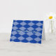Diamond/argyle pattern in two shades, changes both colours when you Customise/edit the background colour. Text on front "Happy Father's Day!" and inside "Thanks Dad!" may also be changed. Current colour is a dark blue background, value of the other diamonds is 10% of the colour chosen for the background.