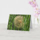 Puffball. Close up of a brown dandelion like puffball in green grass. On inside - "Make a Wish - Happy Birthday!"