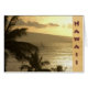 A greeting card showing a hi-key sunset with a catamaran sailing on the golden shimmering ocean waters before the island of Lanai. Add some palm trees to the foreground in silhouette and you have a window into paradise. Aloha, from Lahaina on the Island of Maui in Hawaii! "Hawaii" and inside text is customisable: change wording, change fonts, change size, change colours, reposition it, or remove it completely.