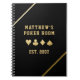 Modern yellow gold and black suit symbols in a straight line on personalised custom notebook, perfect for the host of a game room, poker tournament, bridge club, or rummy games - add your name or custom text and select a background colour for a great birthday gift for a card player. ––– Change the colours or fonts in the design by clicking the CUSTOMIZE FURTHER link.