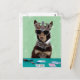 Another cute photo in the anthropomorphic postcard series: The Adventures of Ally, The Australian Kelpie dog. Here she is in Vegas at a gambling table, dressed as a card shark (or card sharp) with sunglasses, crown, and cape. Photo by Louise Docker