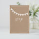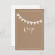A simple wedding rsvp featuring a brown paper cardboard inspired background on front and illustration of eyelet bunting.