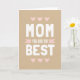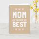 I customised this card for my Mum for Mother's day. Such a simple, yet elegant looking card. I love how easy is it to personalise it. Arrived within a good time frame and on time. My Mum loved it. We live on the other side of the world so it's lovely to be able to send something special with a personal touch. I've used zazzle for a long as I know now and I highly recommend if you want to send a specially customisable card to a loved one or friend. Great quality. Perfect