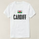 This shirt shows the Welsh flag in patriotic red, white and green, with the name "CARDIFF" written beneath in black bold lettering.