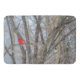 A male Cardinal and a black capped Chickadee sit in my redbud tree during a snow storm.