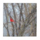 A male Cardinal and a black capped Chickadee sit in my redbud tree during a snow storm.
