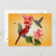 Cardinal and Hummingbird with Pink Lilies and Ivy Postcard