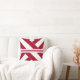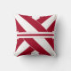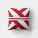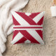 This cardinal and white throw pillow contains an intricate ribbon design printed directly onto the pillow.