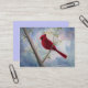 From an original mixed media painting by Brenda Thour of a red male cardinal sitting on a bare tree branch with an abstract blue and pink sky. Copyright by Brenda Thour 2005.