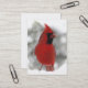 This artist trading card features a brilliant red cardinal. He is truly the king of backyard birds! Here he is perched on a snowy rail eating black oil sunflower seeds while the winter snow swirls around him.