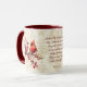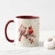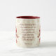 Red cardinal decorative mug with quote from the Bible - Matthew 6:26 "Look at the birds of the air: They do not sow or reap or gather into barns -- and yet your heavenly Father feeds them. Are you not much more valuable than they?" Off white damask background. Your choice of many different sizes, colours and styles of mug. There is a matching calendar towel. Thanks for looking.
