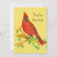 A colourful birthday party invitation decorated with a bright red cardinal bird on a tree branch illustrated with ink and watercolor on a warm yellow background. You can customise the text and background colour to fit your needs.