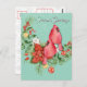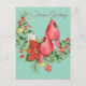 Cardinal Birds Perched on Christmas Wreath Postcard