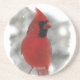 This coaster features a brilliant red cardinal. He is truly the king of backyard birds! Here he is perched on a snowy rail eating black oil sunflower seeds while the winter snow swirls around him.