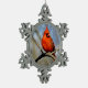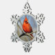 Bright red cardinal stands out on lovely pewter ornament. Many people enjoy displaying this lively red bird at holiday time!