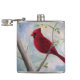 From an original mixed media painting by Brenda Thour of a red male cardinal sitting on a bare tree branch with an abstract blue and pink sky. Copyright by Brenda Thour 2005.