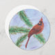 Original artwork and an original circular card of a holiday cardinal.